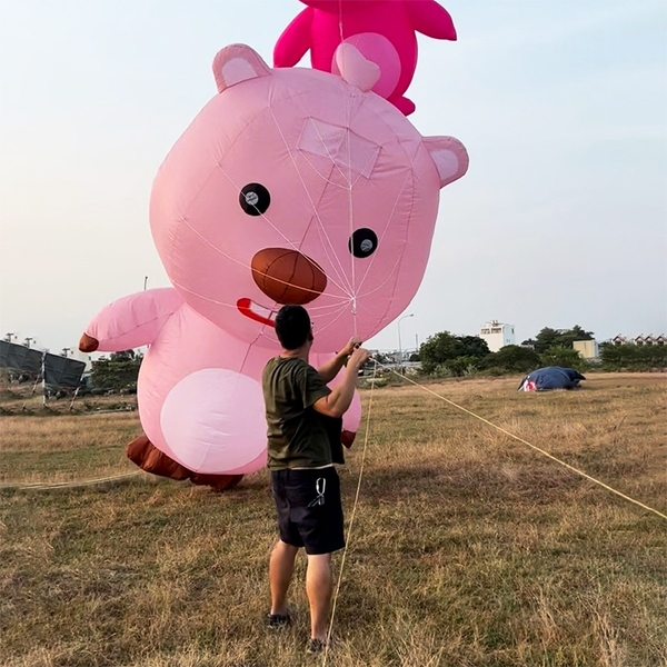 - Gió thổi vào các lỗ gió trên diều treo để thổi phồng con diều ra.